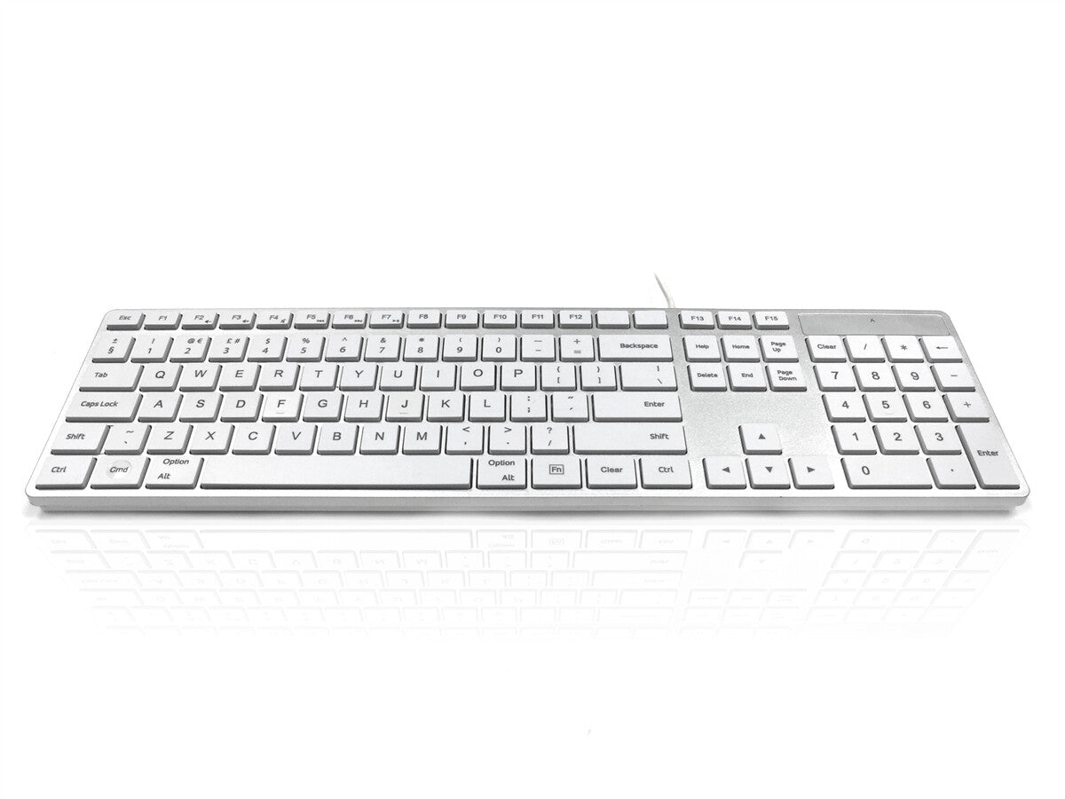 Accuratus 301 MAC - USB Wired Full Size Apple Mac Multimedia Keyboard with White Square Tactile Keys and Silver Case