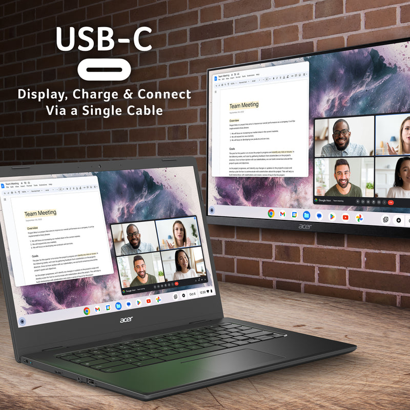 The Chromebook 314 also features a sharp 14” screen, boasting a Full HD resolution for amazing sharpness and detail.