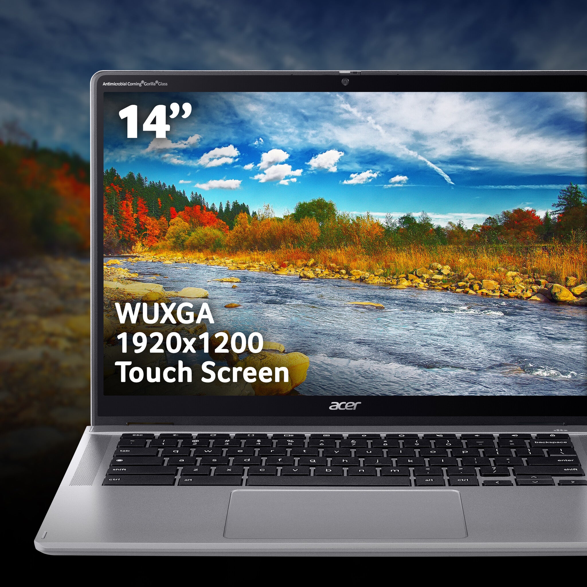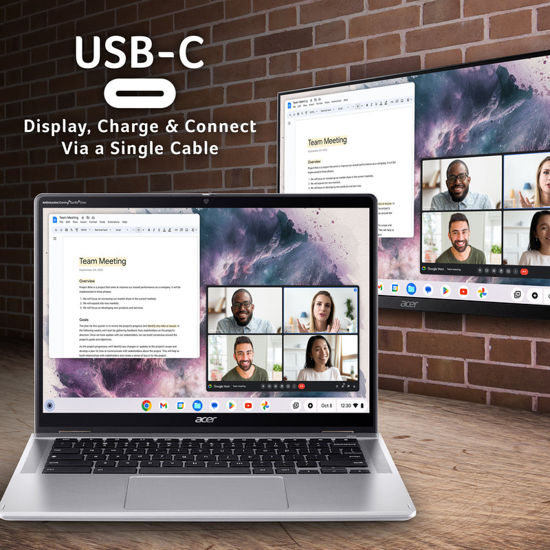 The display of the Chromebook Spin 314 is a 14” WUXGA touchscreen, which provides 10% more detail compared to a conventional Full HD display. You also have Corning Gorilla Glass covering the screen for protection against scratches, chips and cracks.