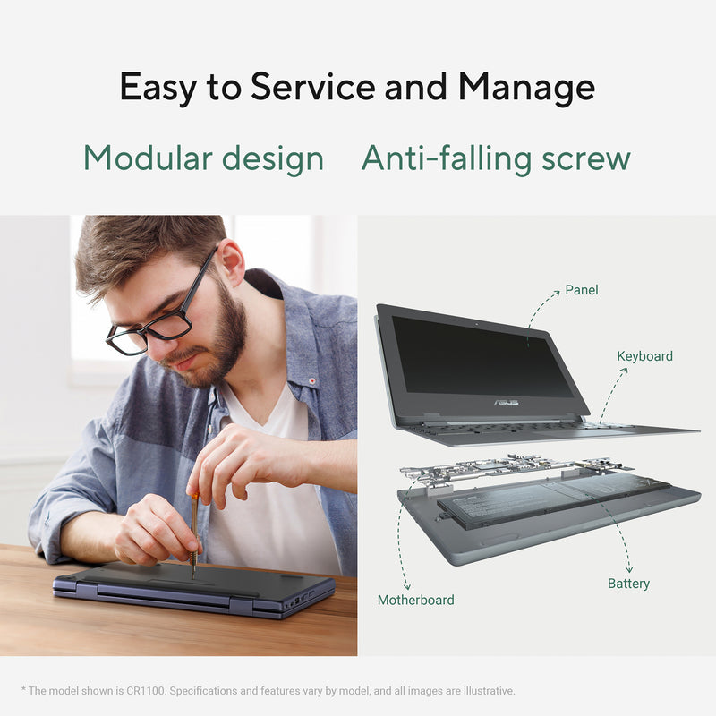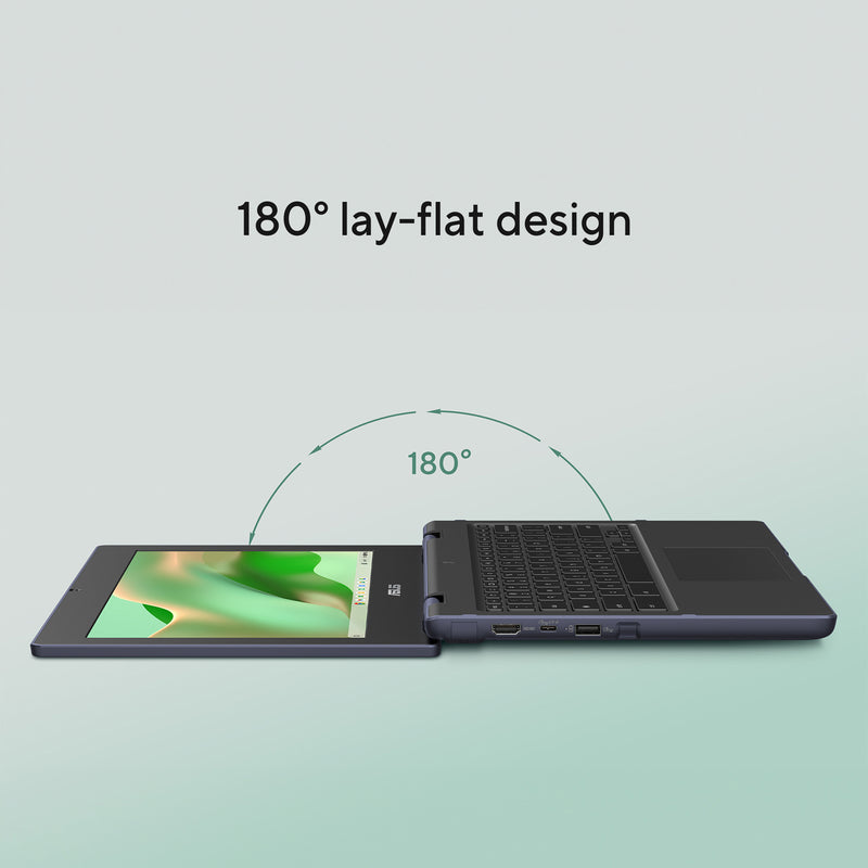 ASUS Chromebook CZ11 is an excellent study companion for K-12 students, with a portable and durable design that guarantees enduring value and empowers engaged learning — anywhere. Its 180° lay-flat design, coupled with an 11.6-inch display incorporating TÜV-certified technology1, enhances the visual experience while emphasizing eye protection. The series boasts up to 19 hours of battery life2 for uninterrupted use throughout an entire day of classes, empowering students to extend their learning beyond traditional limits.