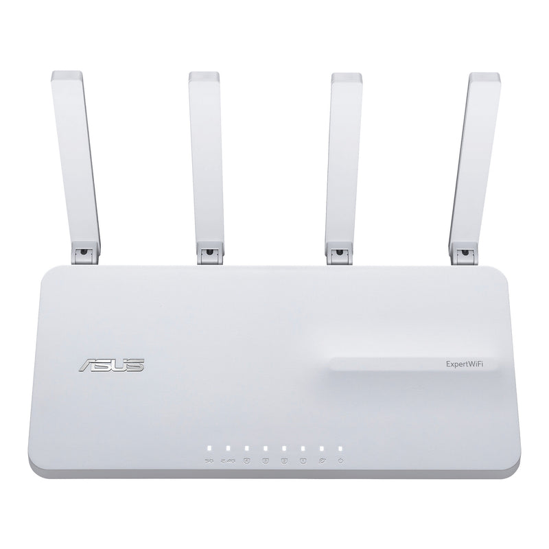 ASUS EBR63 – Expert WiFi. WAN connection type: RJ-45. Wi-Fi band: Dual-band (2.4 GHz / 5 GHz), Top Wi-Fi standard: Wi-Fi 6 (802.11ax), WLAN data transfer rate (max): 2402 Mbit/s. Ethernet LAN interface type: Gigabit Ethernet, Ethernet LAN data rates: 10,100,1000 Mbit/s, Cabling technology: 10/100/1000Base-T(X). Security algorithms: SSH, WPS. Product type: Tabletop router, Product colour: White, LED indicators: Activity, LAN, Power, WAN