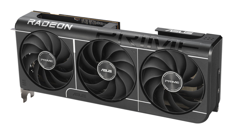 ASUS Prime -RX9070-O16G-EVO. Graphics processor family: AMD, Graphics processor: Radeon RX 9070. Discrete graphics card memory: 16 GB, Graphics card memory type: GDDR6, Memory bus: 256 bit. Maximum resolution: 7680 x 4320 pixels. DirectX version: 12 Ultimate, OpenGL version: 4.6. Interface type: PCI Express 5.0. Cooling type: Active, Number of fans: 3 fan(s)