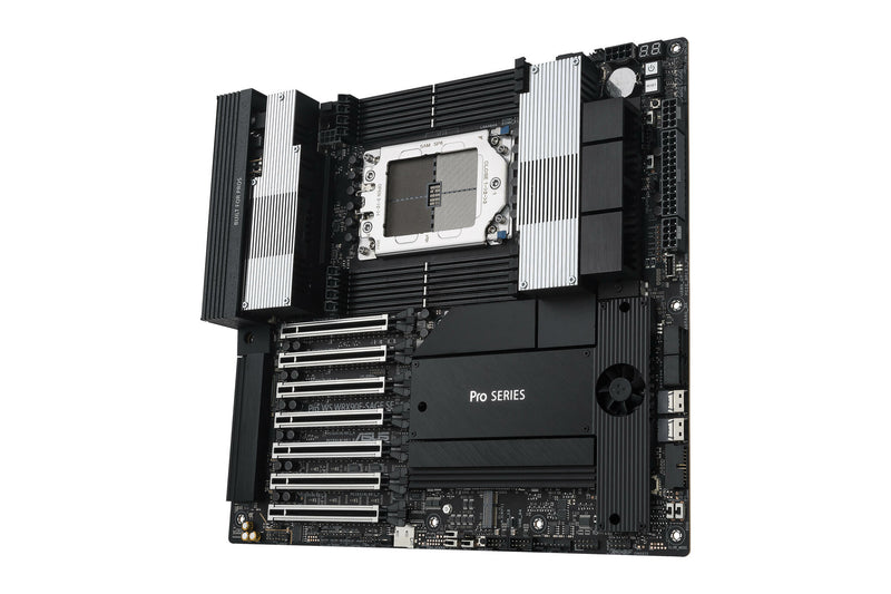 The ASUS PRO WS WRX90E-SAGE SE motherboard is not just about raw power; it also boasts a variety of features that enhance its usability and performance: - Active VRM Cooling Solutions: The motherboard includes extruded aluminium heatsinks with active cooling on the MOSFETs and chokes, significantly improving thermal efficiency. - ProCool II Connectors: These ensure a reliable connection to the 12V CPU input, enhancing heat dissipation and stability during operation. - ASUS Control Center Express: This real-time IT monitoring and management software improves productivity and enhances security, making it easier to manage your workstation. - Innovative DIY Design: Features like PCIe Q-release Slim allow for easy removal of graphics cards, while SafeSlot and SafeDIMM designs ensure secure installation of expansion cards and memory modules. - 24/7 Reliability: Optimised for continuous operation, the motherboard is tested to function in diverse environments, making it a dependable choice for critical applications.