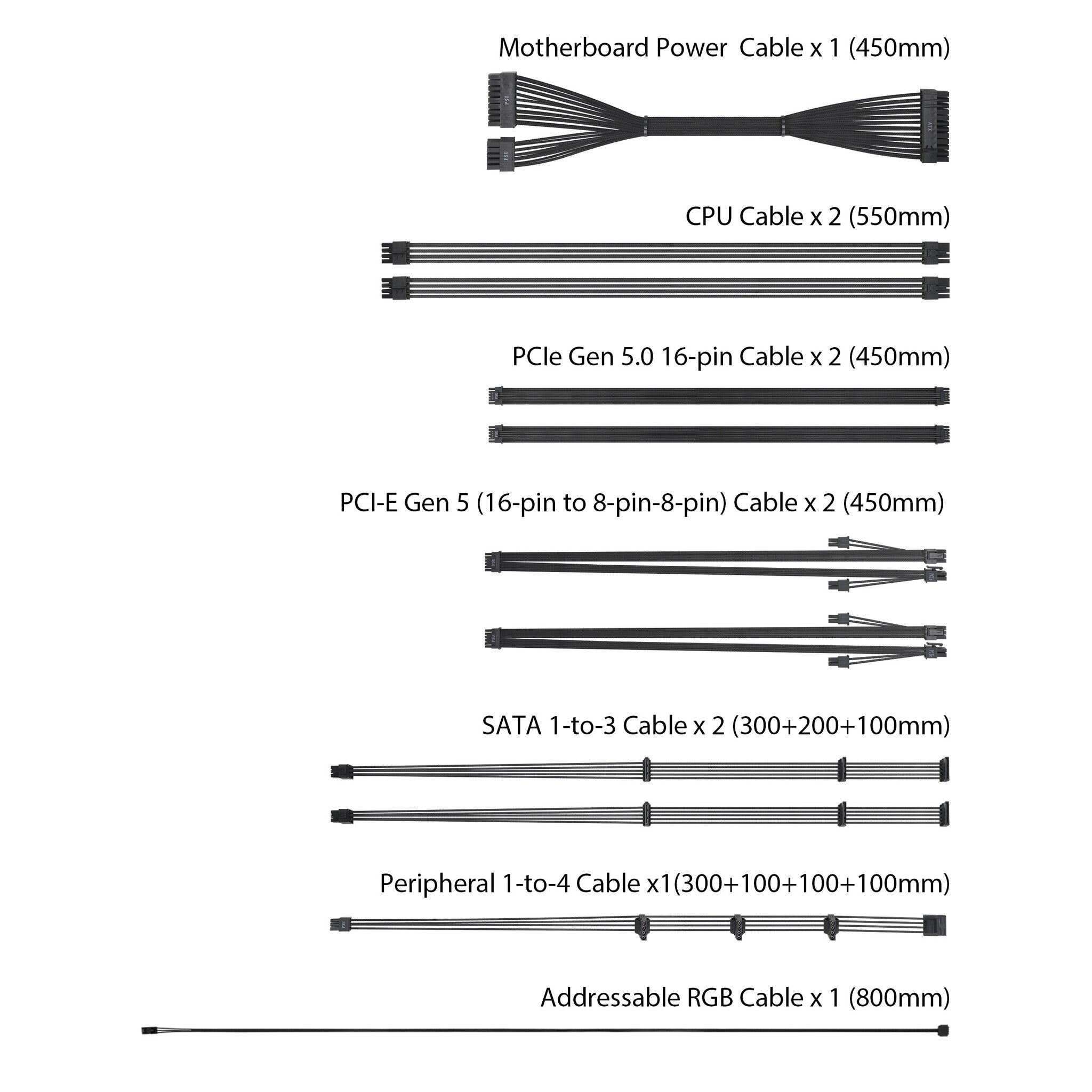 | Cables included | AC, CPU, PCIe, Peripheral (Molex), SATA |