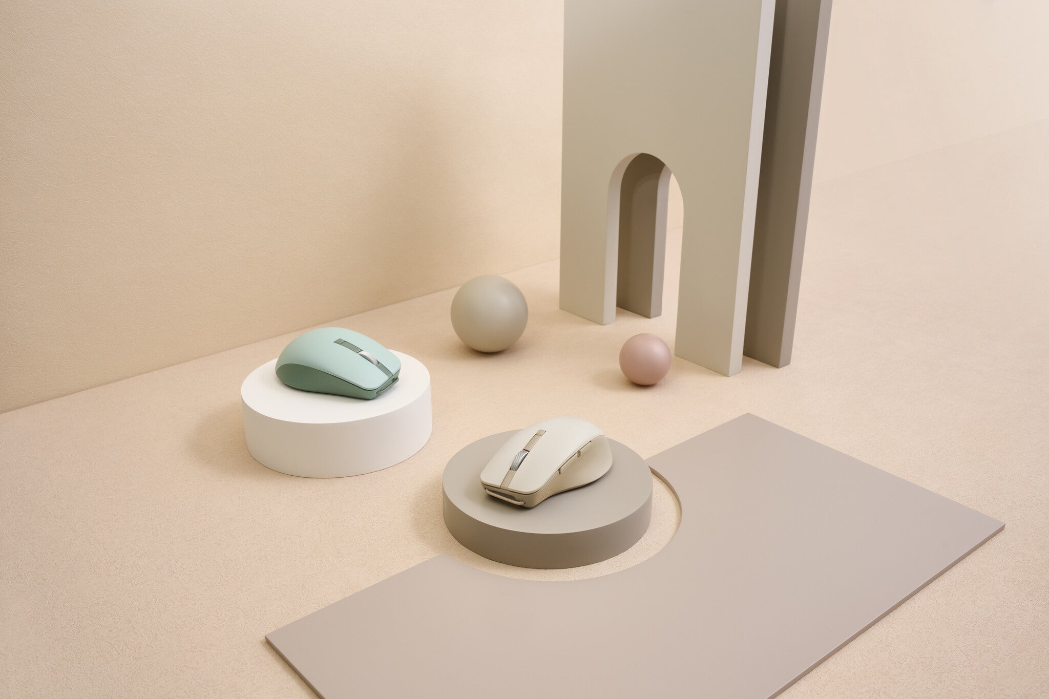 ASUS SmartO Mouse MD200 Silent Plus. Form factor: Ambidextrous. Movement detection technology: Optical, Device interface: RF Wireless + Bluetooth, Movement resolution: 4200 DPI, Buttons quantity: 6, Scroll type: Wheel. Power source: Batteries. Product colour: Beige
