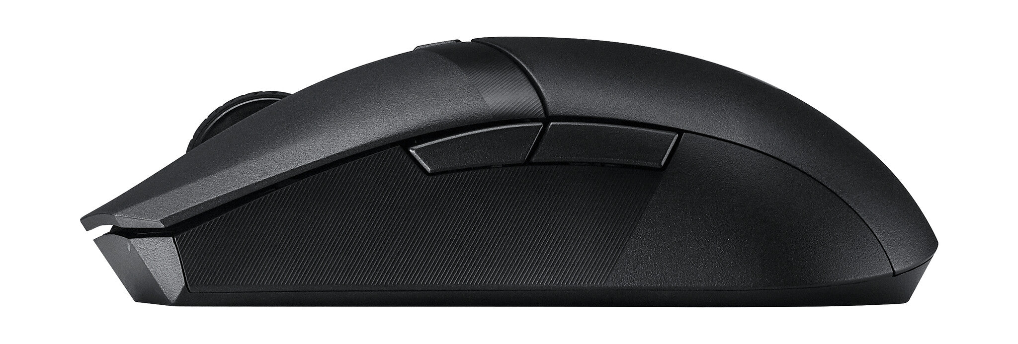 MAXIMUM PROTECTION. MINIMUM WEIGHT. The TUF Gaming M4 Wireless is a compact wireless gaming mouse that delivers the performance, reliability and comfort you demand. Designed for prolonged campaigns, its 100% PTFE mouse feet and high-precision 12,000 dpi optical sensor offer pinpoint control for that added edge in battle. The M4 Wireless is shaped like an ambidextrous form factor mouse to provide a balanced feel, weighs just 62 grams*. Its PBT cover is protected by ASUS Antibacterial Guard treatment. For added convenience, M4 Wireless works with both AAA or AA batteries. *Weight excluding battery and dongle DUAL WIRELESS CONNECTIVITY The TUF Gaming M4 Wireless features dual modes via 2.4 GHz wireless and Bluetooth connections for superb stability. ANTIBACTERIAL PBT TOP COVER AND SIDE BUTTONS The TUF Gaming M4 Wireless features a PBT top cover and side buttons with an anti-bacterial ionic silver treatment. The PBT material resists wear or shine, and ensures a consistent feel and secure grip. The alcohol-safe surface also allows you to clean the mouse surfaces without concern. ASUS ANTIBACTERIAL GUARD To keep your TUF Gaming M4 Wireless hygienic, its surfaces and side buttons are protected by the new ASUS Antibacterial Guard ionic silver treatment. Positively-charged silver (Ag+) ions bind with the cell walls of negatively-charged microbes and bacteria, disrupting their internal functions and prevent further growth. Antibacterial Guard has been scientifically shown to inhibit the growth of bacteria by more than 99%* over a 24-hour period. Antibacterial Guard helps keep the surfaces of your mouse clean and sanitary, potentially reducing the spread of harmful bacteria. *Subjected to ISO 22196 Antimicrobial Activity and Efficacy tests conducted by Taiwan Testing Center SGS WORKS WITH AAA AND AA BATTERIES A bundled AAA-to-AA battery converter lets you power the TUF Gaming M4 Wireless with AA or AAA batteries*. Pairing the smaller AAA battery with the converter results in a 10% weight reduction, which can lead to faster movements. *AA and AAA batteries included. 100% PTFE MOUSE FEET The 100% polytetrafluoroethylene (PTFE) mouse feet on TUF Gaming M4 Wireless ensures that it glides smoothly across any mouse pad surface. SIX TACTILE & PROGRAMMABLE BUTTONS The TUF Gaming M4 Wireless features six tactile and programmable buttons, allowing you to tailor controls to suit your style of play. The left and right buttons are separated from the top cover, resulting in lower actuation force and travel distance for faster and more tactile clicks. A DPI switch and indicator lets you adjust sensitivity on the fly, while two strategically placed left-side buttons and a clickable scroll wheel offer additional control options. ARMOURY CRATE Armoury Crate software offers extensive controls and an intuitive UI that lets you tune the TUF Gaming M4 Wireless to suit the way you play. Create profiles, map buttons, adjust performance settings, and more.