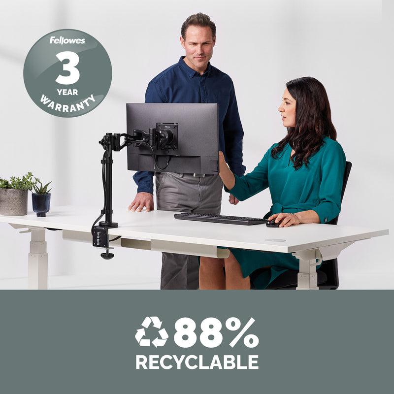 • CABLE MANAGEMENT SYSTEM - Intuitive cable management system and low profile base helps you minimise clutter with the Fellowes Vista monitor arm