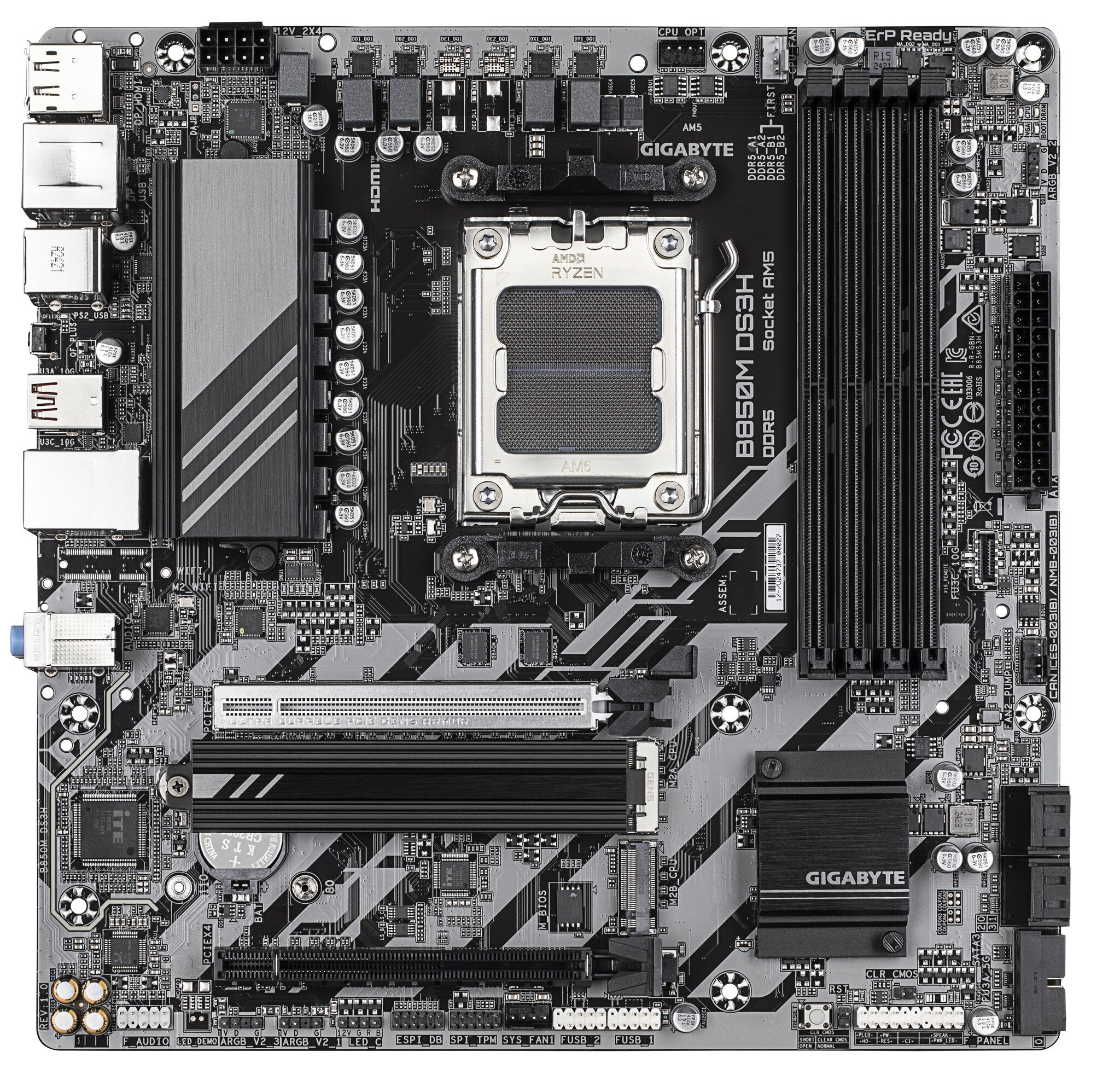 Gigabyte B850M DS3H micro ATX AMD Motherboard | AM5 Socket - 4 x DDR5 Memory Slots