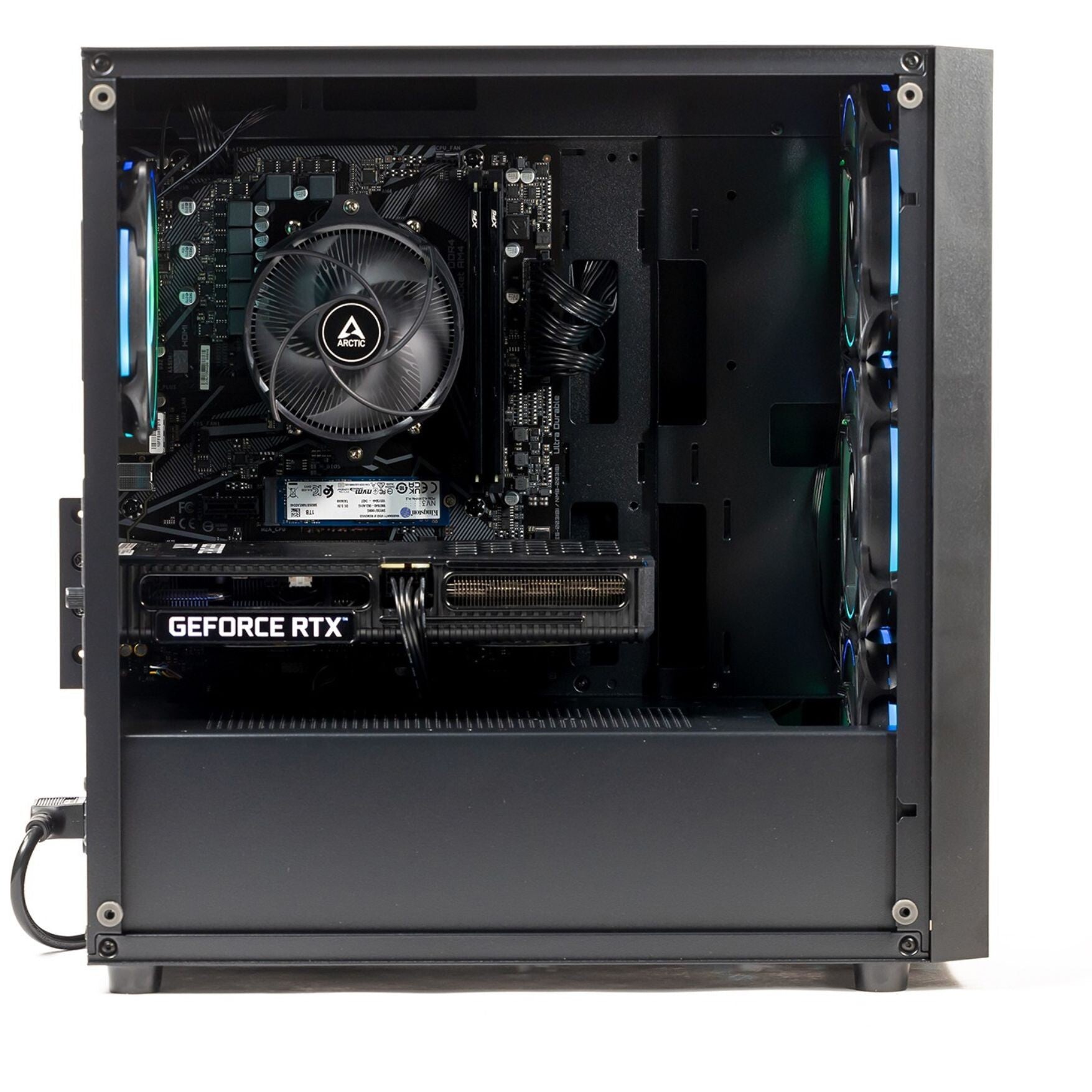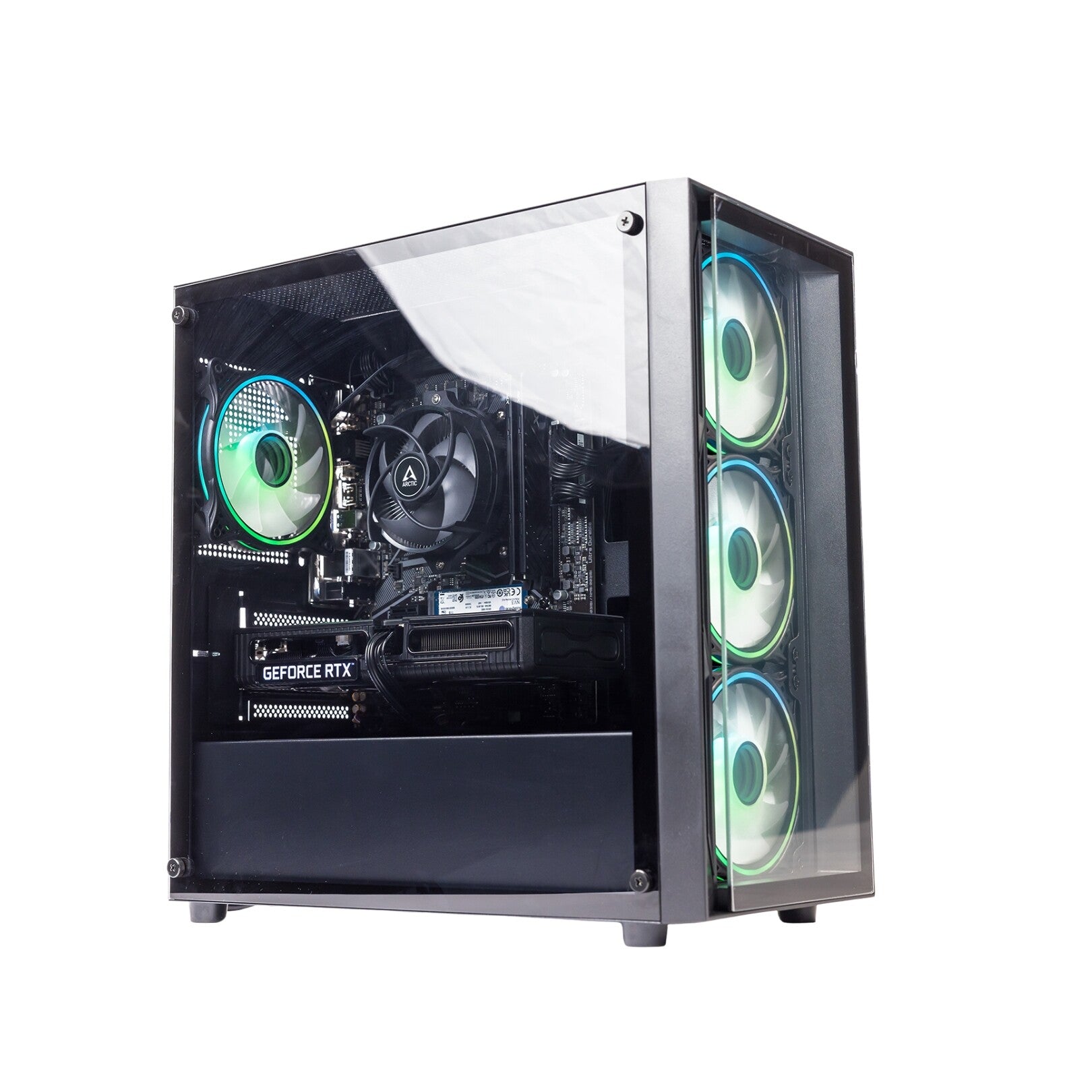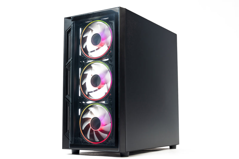 Case: ARGB Glass Black Case — Show off your build with a premium black tempered glass chassis and synchronised ARGB lighting for a fully customisable look.