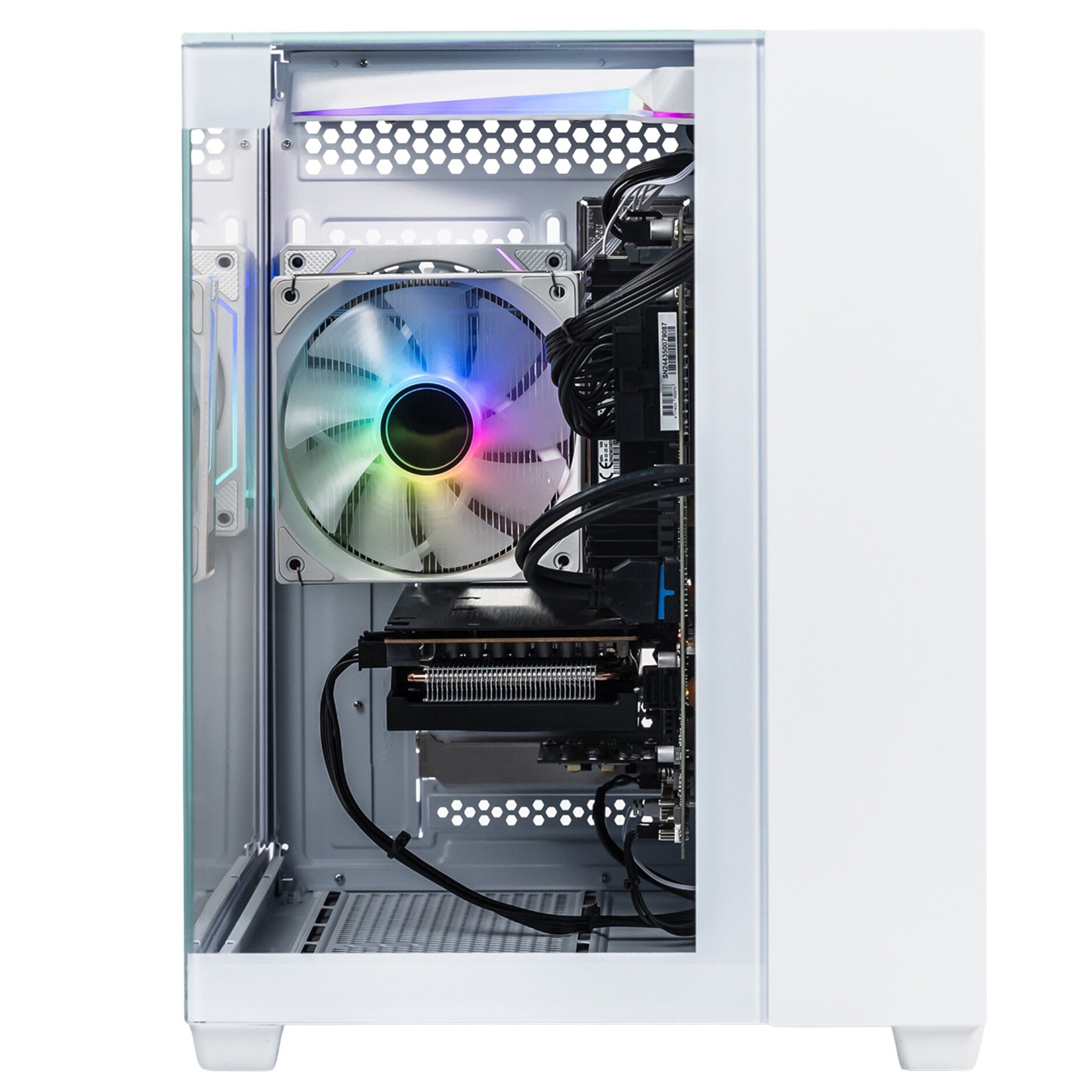 Case: Nightfall White Edition ARGB Case — A crisp, airflow-optimised white chassis with tempered glass and integrated RGB lighting to showcase your components.
