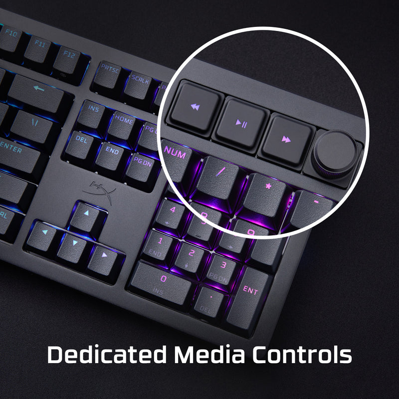 As the world's most customizable toolless mechanical gaming keyboard on the market[5], the HyperX Alloy Rise takes personalization to the next level. Not only can you hot swap in key switches, but also magnetic top plates, badges, and more. All that customization is built onto the Alloy Rise’s solid frame and ultra-responsive 8k polling rate. Out of the box, this keyboard features pre-lubed HyperX Linear Switches rated for up to 80 million keypresses1 as well as pre-installed HyperX PBT Keycaps. You’ll also get an upgraded RGB experience courtesy of the ambient light sensor that auto-adjusts the brightness, 10 keyboard profiles saved directly to the keyboard, and powerful customization via HyperX NGENUITY Software. Get one step closer to your endgame with the HyperX Alloy Rise.