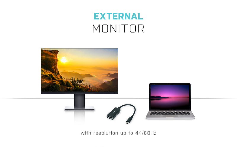 Extend your desktop with an external Display Port monitor via the new USB-C or Thunderbolt 3 connector. The adapter supports the transfer of 4K Ultra HD resolution up to 3840 x 2160 @ 60 Hz pixels including the audio signal.
