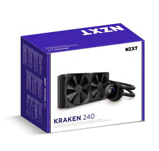 NZXT Kraken 240. Type: All-in-one liquid cooler, Fan diameter: 12 cm, Maximum airflow: 78.02 cfm, Minimum air pressure: 0.75 mmH2O, Maximum air pressure: 2.7 mmH2O. Product colour: Black