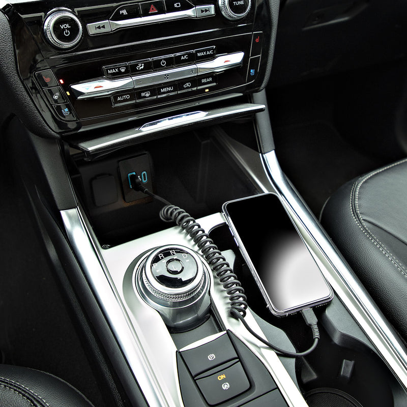 - USB-C TO LIGHTNING CABLE: Coiled cable stretches up to 20in (50cm) and contracts to 12.5in (32cm) preventing it from being tangled; Strong but soft flexible TPE jacket, makes it easy to coil and put away in vehicle console or glove compartment
