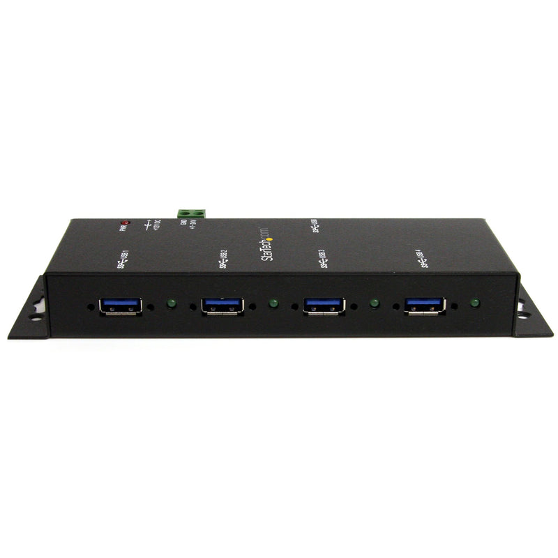 Industrial-grade | 8kV Air | 4kV Contact | Metal | Mountable | 5 GbpsThis TAA compliant 4-port industrial USB 3.0 hub gives you the scalability you need in harsh industrial environments, product and repair labs, conference rooms or office workstations. With its rugged industrial grade metal housing, it is designed to meet the advanced requirements of connecting a high number of devices in factories and office environments.Perfect for Harsh EnvironmentsThis industrial USB hub delivers reliable performance with a metal, heavy-duty housing. It supports wide-range 7-24V DC terminal block input, giving you the flexibility to power the hub as required, based on your own power input capabilities.Perfect for factory environments, the rugged hub also supports a wide operating temperature range (0°C to 55°C) and offers ESD protection to each USB port, which can help prevent damage to your connected devices.Connect & Charge More USB DevicesDesigned for a high volume of connections, this robust USB 3.0 hub offers four connection ports, for connecting more USB devices and peripherals.The hub also supports USB battery charging specification 1.2, delivering up to 2.4A on any port to a maximum of 20W total, so you can charge your mobile devices faster than traditional USB ports allow.Locate the Hub Where You Need It MostWith versatile installation options, you can install the hub where it’s best suited for your environment. With built-in mounting brackets and an included 1.8-meter USB host cable, you can securely mount the USB 3.0 hub to most surfaces such as a wall, under a desk or rack.StarTech.com offers an external power adapter, ITB20D3250, sold separately. The universal DC power adapter can be used as an alternative, back up or replacement power supply for StarTech.com’s line of industrial USB hubs.Works with Older USB DevicesThe rugged USB hub supports the full 5 Gbps bandwidth of USB 3.0 and is backward compatible with previous USB devices. You can connect your legacy peripherals alongside your newer USB 3.0 devices without any disruptions.The ST4300USBM is backed by a StarTech.com 2-year warranty and free lifetime technical support.The StarTech.com Advantage