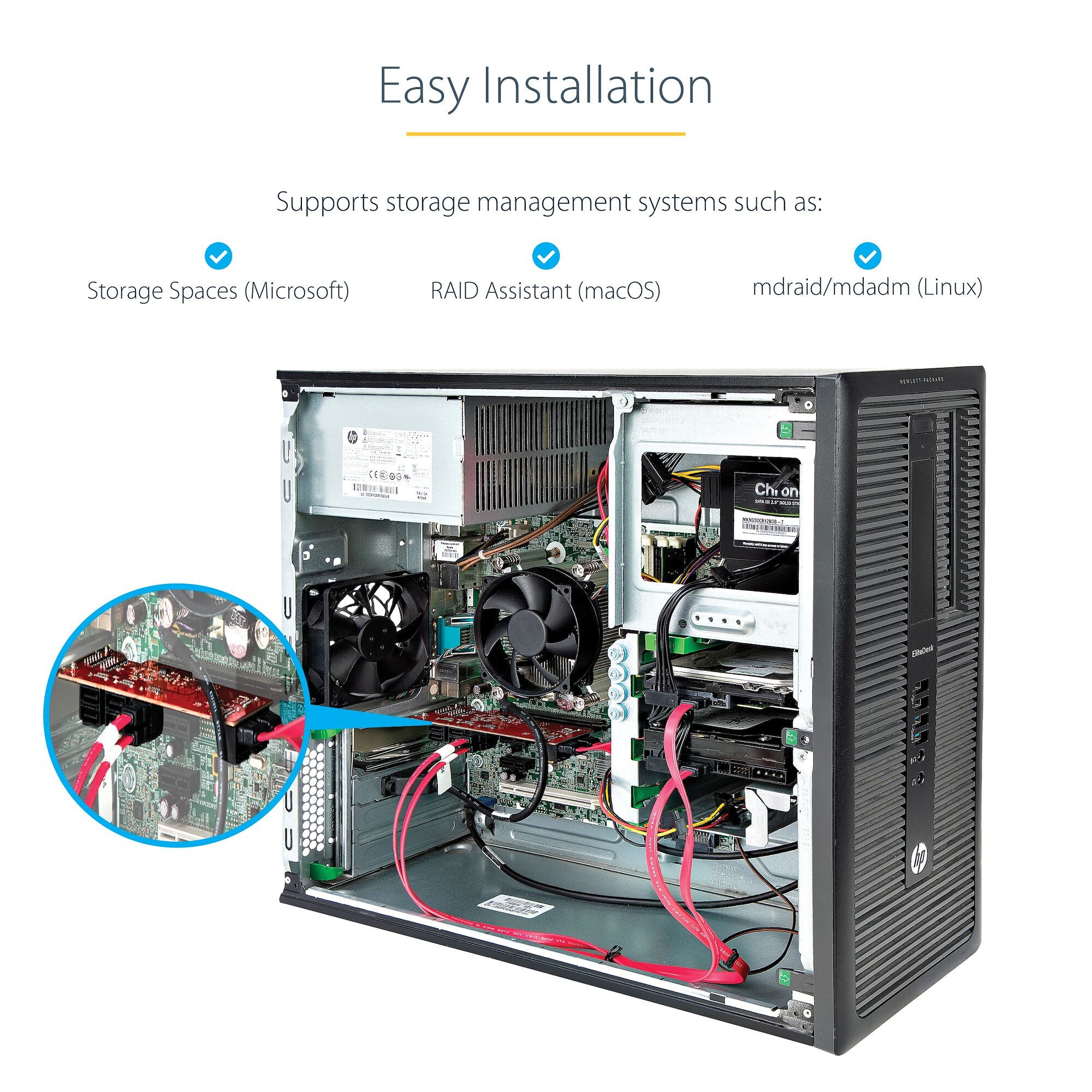 • EASY INSTALL: Expansion card w/ plug-and-play setup in full or low-profile PCI-e slot (full-profile bracket installed, low-profile incl); Supports storage management systems such as Storage Spaces (Microsoft) , RAID Assistant (macOS), mdraid/mdadm (Linux)