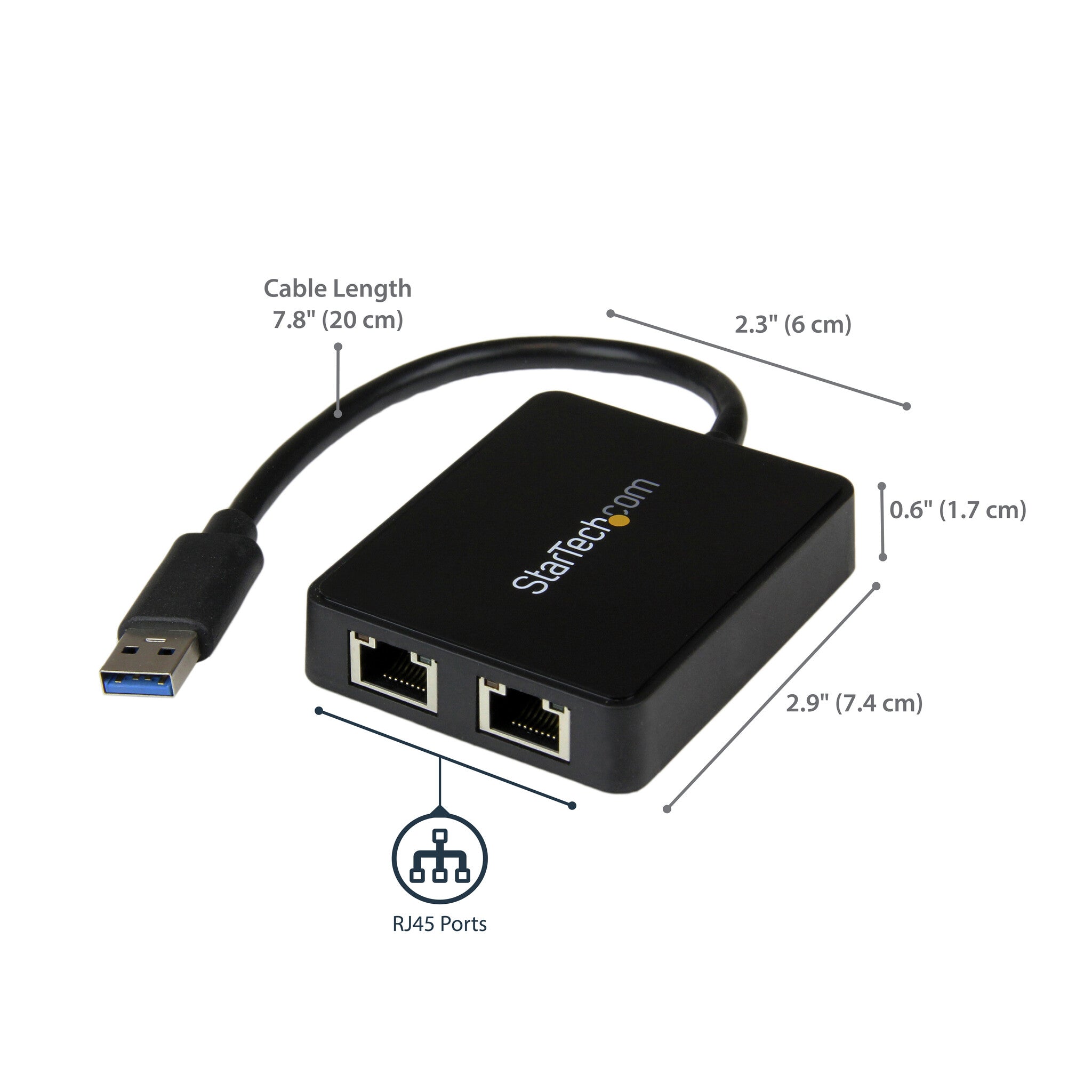 StarTech.com USB 3.0 to Dual Port Gigabit Ethernet Adapter NIC w/ USB Port. Connectivity technology: Wired, Host interface: USB, Interface: Ethernet. Maximum data transfer rate: 5000 Mbit/s. USB powered. Product colour: Black