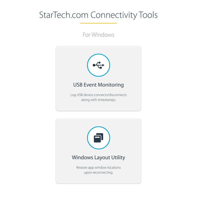 - OUR ADVANTAGE: Included connectivity tools for IT Pros and IT help-desk support teams; Features USB Event Monitoring that logs and timestamps USB port usage enabling admins to identify potentially malicious devices; Features Windows Layout Utility