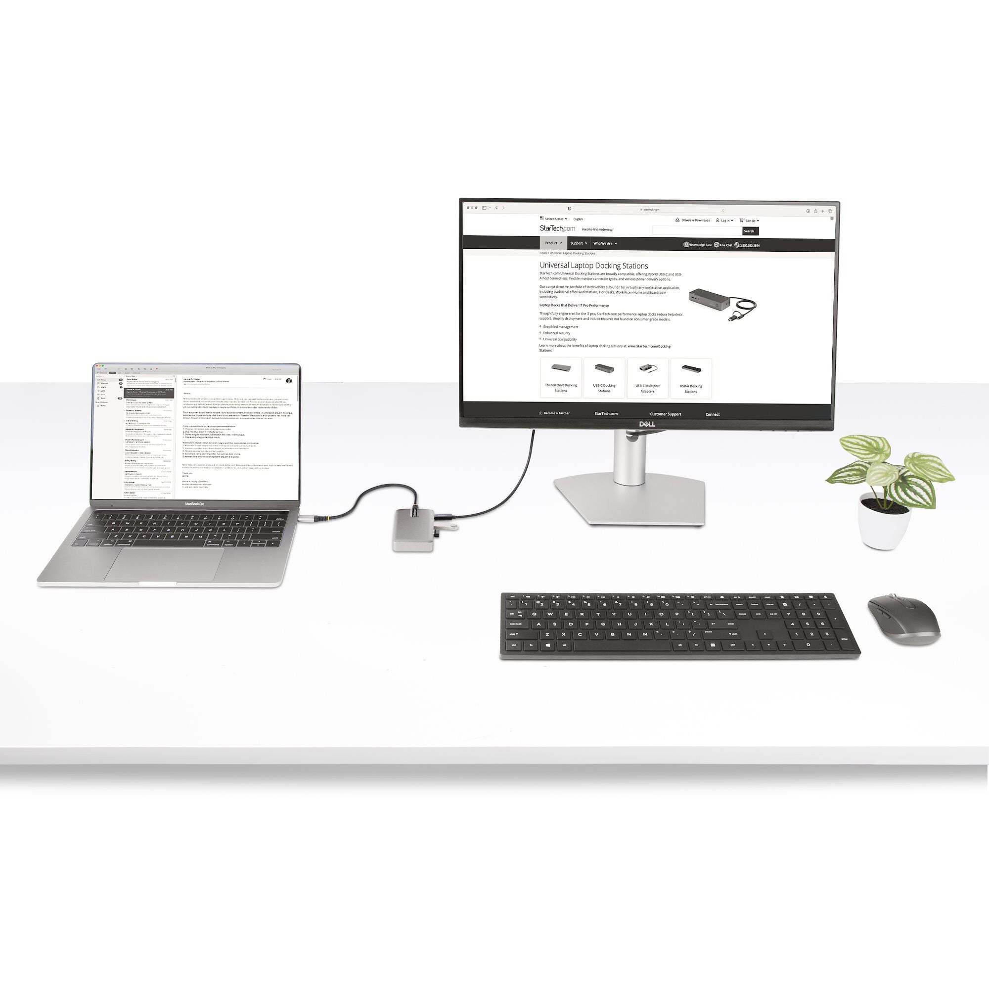 Add four 10Gbps USB ports (3x USB-A and 1x USB-C) to a USB-C enabled laptop while powering and charging the host device with Power Delivery 3.0This USB Type-C Hub with USB-C DP Alt Mode Output and 100W USB Power Delivery pass-through adds four USB 3.2 Gen 2 (10Gbps) ports (3x USB-A, 1x USB-C) to a USB-C enabled computer. The Hub supports USB-C DP Alt mode on the downstream USB-C port, enabling the connection of USB-C portable monitors or desktop monitors. Connect the USB hub to a USB-C port on a laptop, using the built-in 1ft (30cm) USB-C host cable. Charge a host laptop by connecting the host laptop's USB-C power supply to the USB Power Delivery (PD) 3.0 port. Backward compatibility with USB 2.0 (480Mbps) devices ensures support for a wide range of modern and legacy USB peripherals (e.g., external storage devices - thumb drives, HDDs/SSDs, HD cameras, mice, keyboards, webcams, and audio headsets). The USB hub supports Wake on USB and is compact in size, facilitating portability when travelling.USB-C DP Alt Mode Video OutputThe downstream USB-C port on this USB hub supports both 10Gbps data transfers and USB-C DP Alt Mode, with support for resolutions up to 4K 60Hz. This enables users to connect either a USB data peripheral or a USB-C portable or desktop monitor. The USB-C port outputs 12W (5V/2.4A) of power to support portable USB-C monitors, or power and charge other USB peripherals. This integration is particularly valuable for enhancing productivity in professional settings and delivering either video or USB 10Gbps performance, depending upon user needs.USB Power Delivery Pass-ThroughThis USB hub features USB Power Delivery 3.0 pass-through (up to 100W). Connect a power source to the PD pass-through port to power the host, the hub, and an external display, and to enable full charging capabilities for the USB peripheral ports. PD 3.0 features Fast Role Swap (FRS) to prevent USB data disruption when switching power sources (USB-C power adapter to bus power).Power the hub using a USB-C power adapter connected or with bus-powered alone. The hub requires up to 18W of power. This power is dynamically shared across the downstream ports. For added protection to this USB hub and the connected host device, the USB hub features Overcurrent Protection (OCP). OCP prevents faulty USB peripherals from drawing more power than is safely allocated.Plug and PlayThis device is compatible with all major operating systems, including Windows, macOS, ChromeOS, iPadOS, and Android. The Hub is automatically detected, configured, and installed upon connection to a host computer. This ensures automatic installation and setting configuration with any USB-C laptop, including Thunderbolt 3, Thunderbolt 4 and USB4 computers such as Apple MacBook (Intel/M1/M2), Lenovo X1 Carbon and Dell XPS. The built-in extra-long 1 ft. (30 cm) USB-C host cable ensures easy setup and reduces connector strain on 2-in-1 devices such as the Surface Pro 7, iPad Pro, HP Elite X2, and laptops on riser stands.Enhance Productivity and Device Management with the StarTech.com Connectivity Tools ApplicationDeveloped to improve performance and security, StarTech.com Connectivity Tools is the only software suite on the market that works with a wide range of IT connectivity accessories. The software suite includes:•Advanced Windows Layout Utility: Setup and save custom windows layouts.•USB Event Monitoring Utility: Track and log connected USB devices.For more information and to download the StarTech.com Connectivity Tools application, please visit: www.StarTech.com/connectivity-toolsThe StarTech.com Advantage
