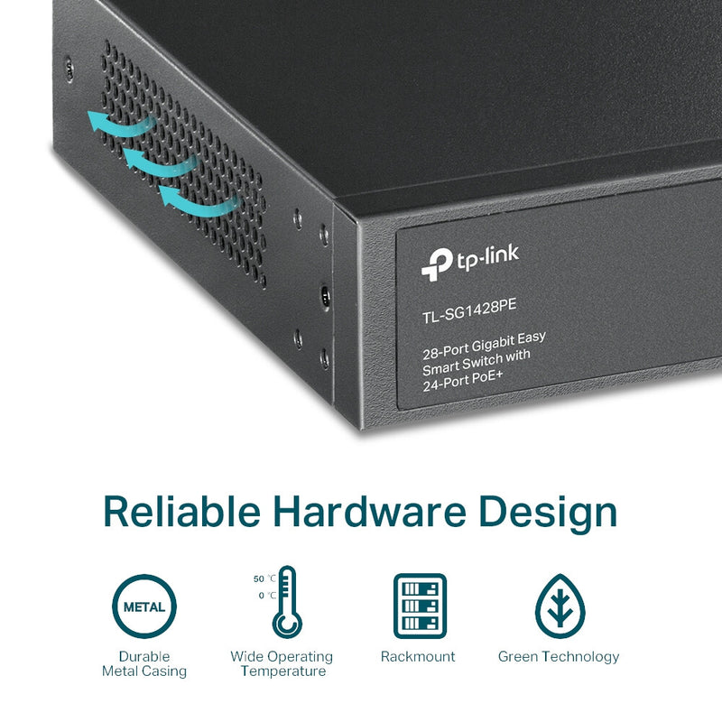 TL-SG1428PE offers network monitoring for users to observe traffic behavior. Through its web-based user interface and management utility, the TL-SG1428PE offers a variety of useful features, including network monitoring, traffic prioritization, and enhanced QoS.