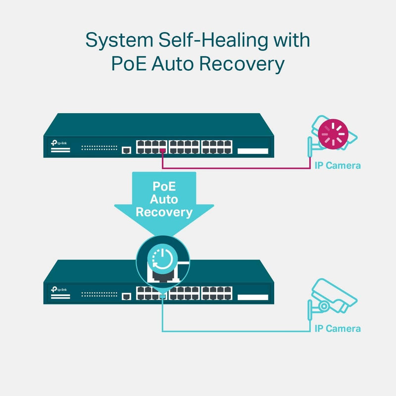 - 384 W total PoE budget with up to 30 W PoE output per port*