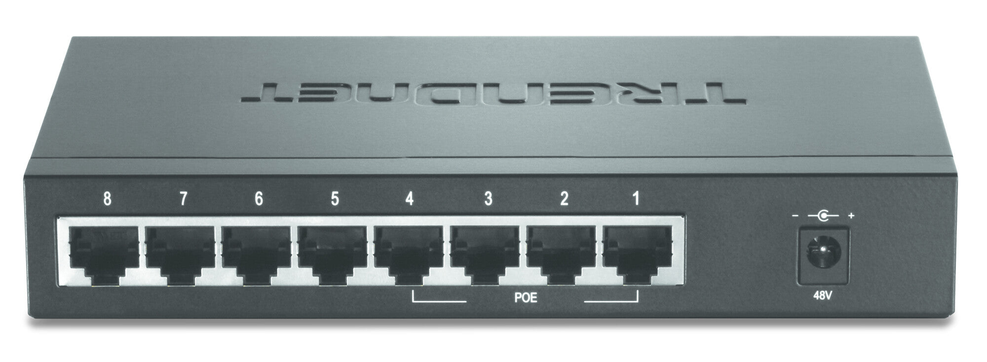 -4 PoE and 4 standard 10/100Mbps ports.