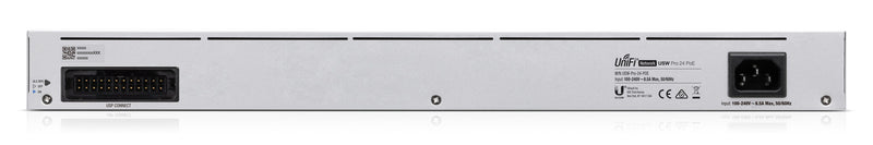 Ubiquiti UniFi Pro 24-Port PoE. Switch type: Managed, Switch layer: L2/L3. Basic switching RJ-45 Ethernet ports type: Gigabit Ethernet (10/100/1000), Basic switching RJ-45 Ethernet ports quantity: 24. Full duplex. Switching capacity: 88 Gbit/s. Networking standards: IEEE 802.3af, IEEE 802.3at. DC input voltage: 52 V. Power over Ethernet (PoE). Rack mounting, Form factor: 1U